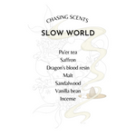 Slow World is a fragrance inspired by tea ceremonies during quiet mornings, where suddenly the world seems slow... A calming soft embrace wherever you are, carrying the whiffs of dreamy incense whispering earthy, woody and sweet secrets.